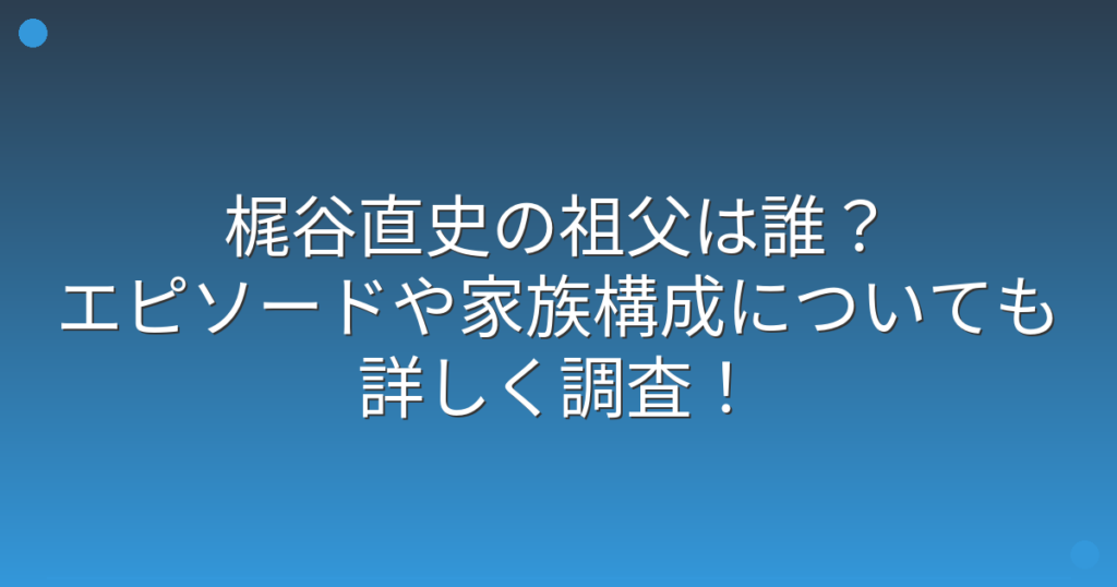 梶谷直史の祖父は誰?エピソードや家族構成についても詳しく調査!