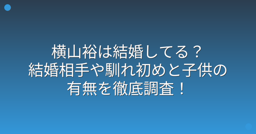 横山裕は結婚してる?結婚相手や馴れ初めと子供の有無を徹底調査!