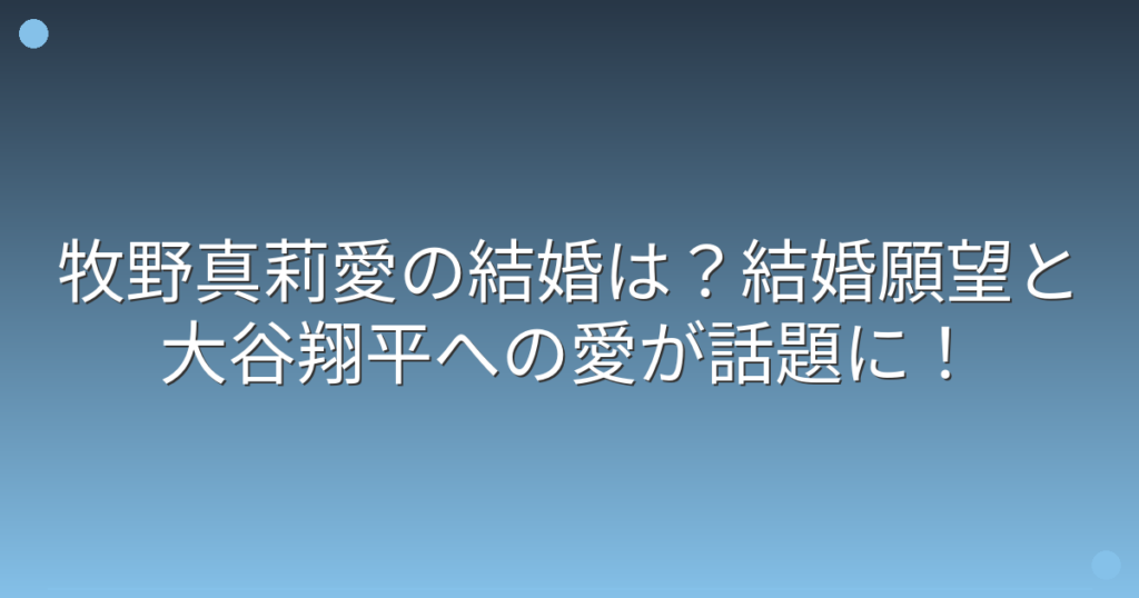 牧野真莉愛の結婚は?結婚願望と大谷翔平への愛が話題に!