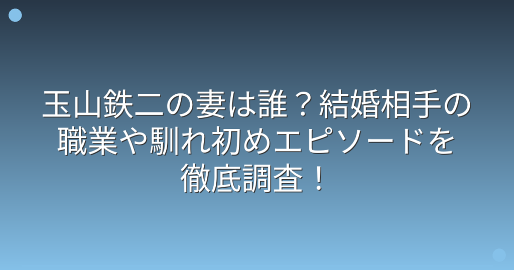 玉山鉄二の妻は誰?結婚相手の職業や馴れ初めエピソードを徹底調査!
