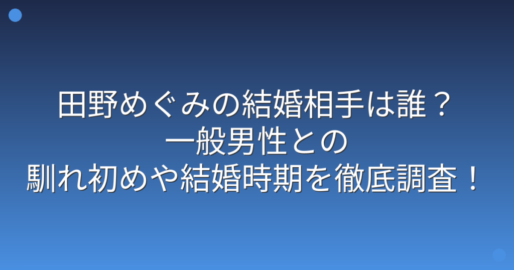田野めぐみの結婚相手は誰?一般男性との馴れ初めや結婚時期を徹底調査!