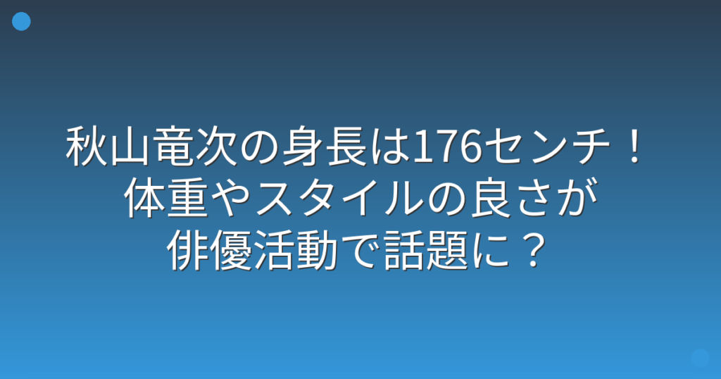 秋山竜次の身長は176センチ!体重やスタイルの良さが俳優活動で話題に?