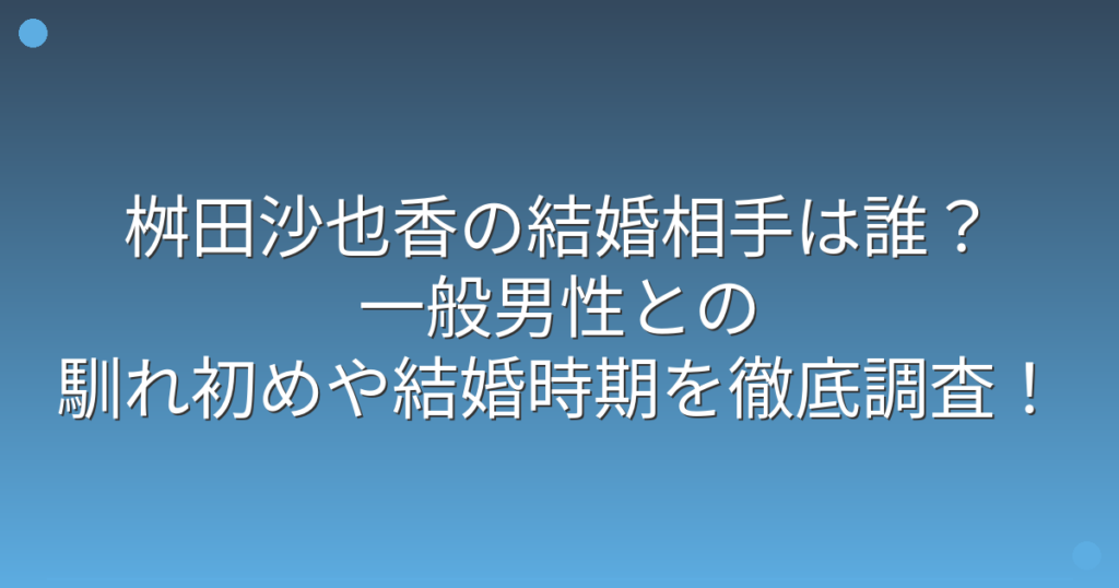 桝田沙也香の結婚相手は誰?一般男性との馴れ初めや結婚時期を徹底調査!