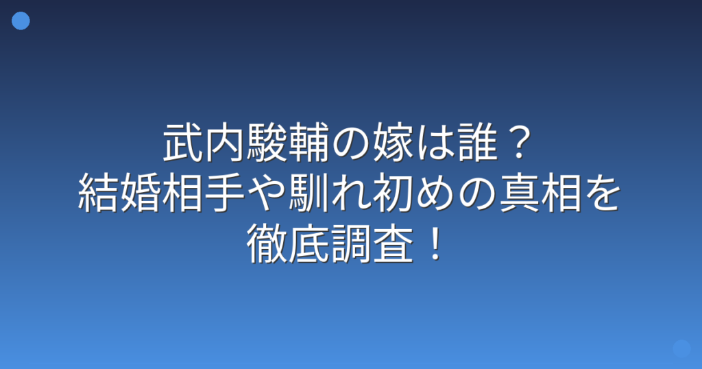 武内駿輔の嫁は誰?結婚相手や馴れ初めの真相を徹底調査!