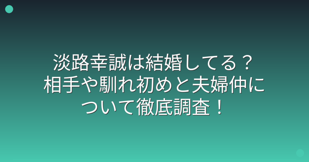 淡路幸誠は結婚してる?相手や馴れ初めと夫婦仲について徹底調査!