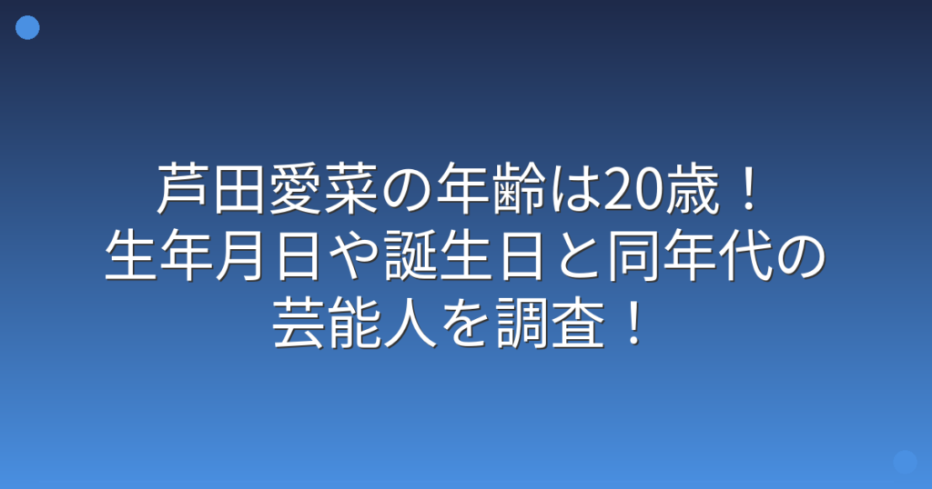 子役時代から活躍し、現在も女優として活躍する芦田愛菜さんの年齢が話題になっていますね。 小さい頃から見ていた芦田愛菜さんがいつの間にか成長し、多くのファンが「もうそんな年齢になったの?」と驚いています。 そこで今回は、芦田愛菜さんの年齢や...