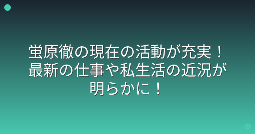 蛍原徹の現在の活動が充実!最新の仕事や私生活の近況が明らかに!