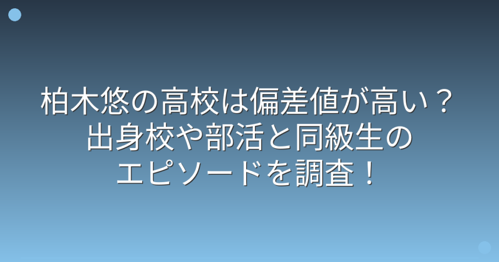 柏木悠の高校は偏差値が高い?出身校や部活と同級生のエピソードを調査!
