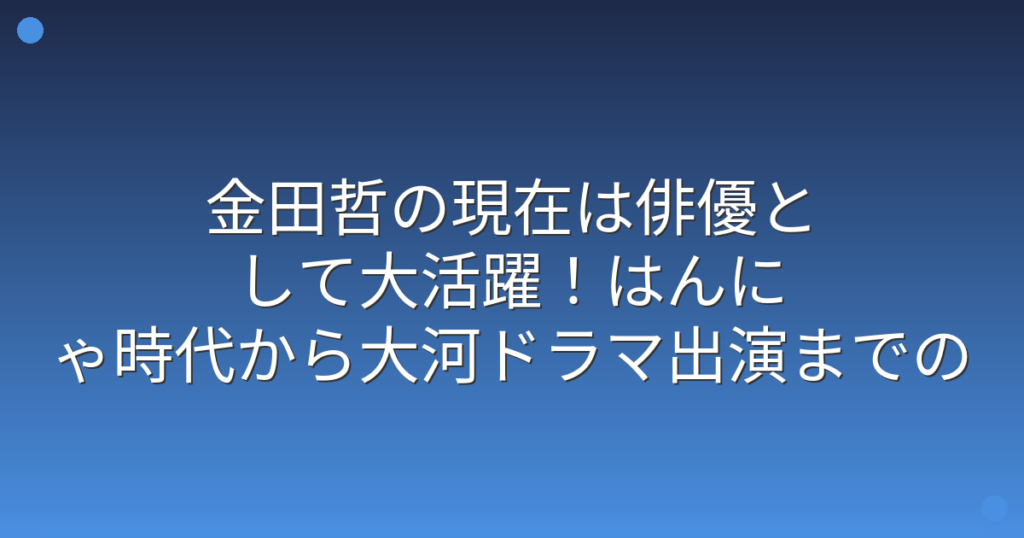 金田哲の現在は俳優として大活躍!はんにゃ時代から大河ドラマ出演までの経歴が凄すぎる!