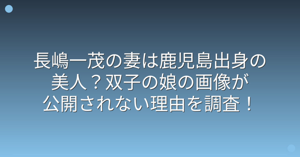 長嶋一茂の妻は鹿児島出身の美人?双子の娘の画像が公開されない理由を調査!