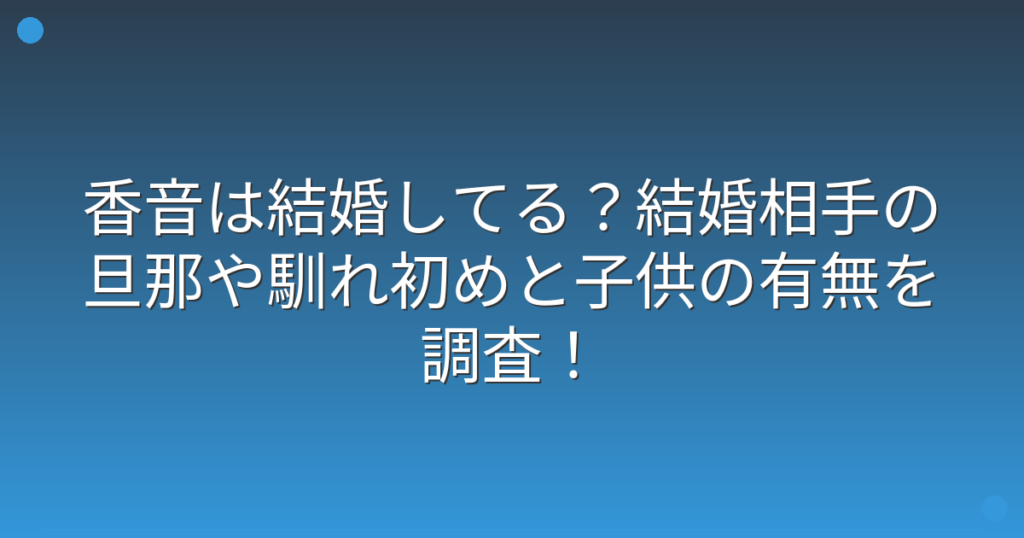 香音は結婚してる?結婚相手の旦那や馴れ初めと子供の有無を調査!