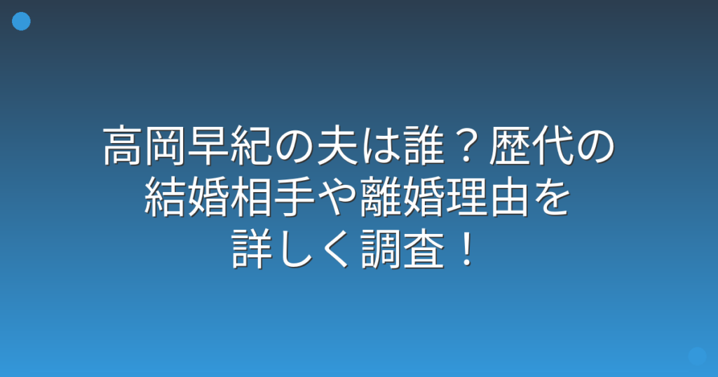 女優の高岡早紀さんの夫について、ファンの間で関心が高まっていますね。 美しい容姿と演技力で多くの作品に出演されている高岡早紀さんですが、プライベートな結婚生活についても注目が集まっています。 そこで今回は、高岡早紀さんの夫や結婚歴、離婚の...