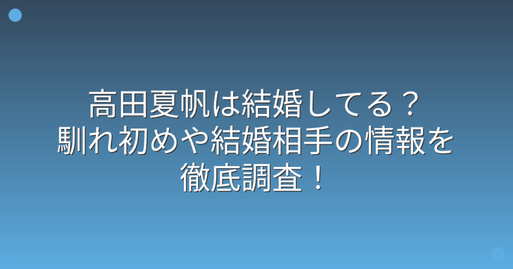 高田夏帆は結婚してる?馴れ初めや結婚相手の情報を徹底調査!