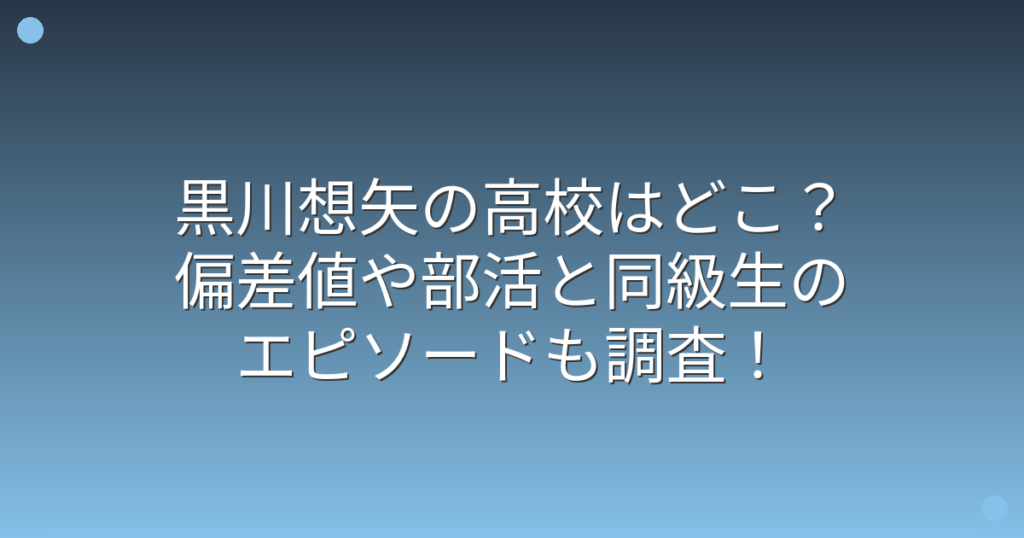 黒川想矢の高校はどこ?偏差値や部活と同級生のエピソードも調査!