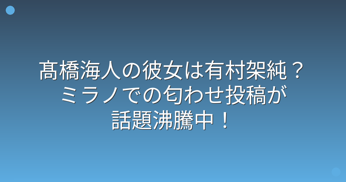 髙橋海人の彼女は有村架純?ミラノでの匂わせ投稿が話題沸騰中!