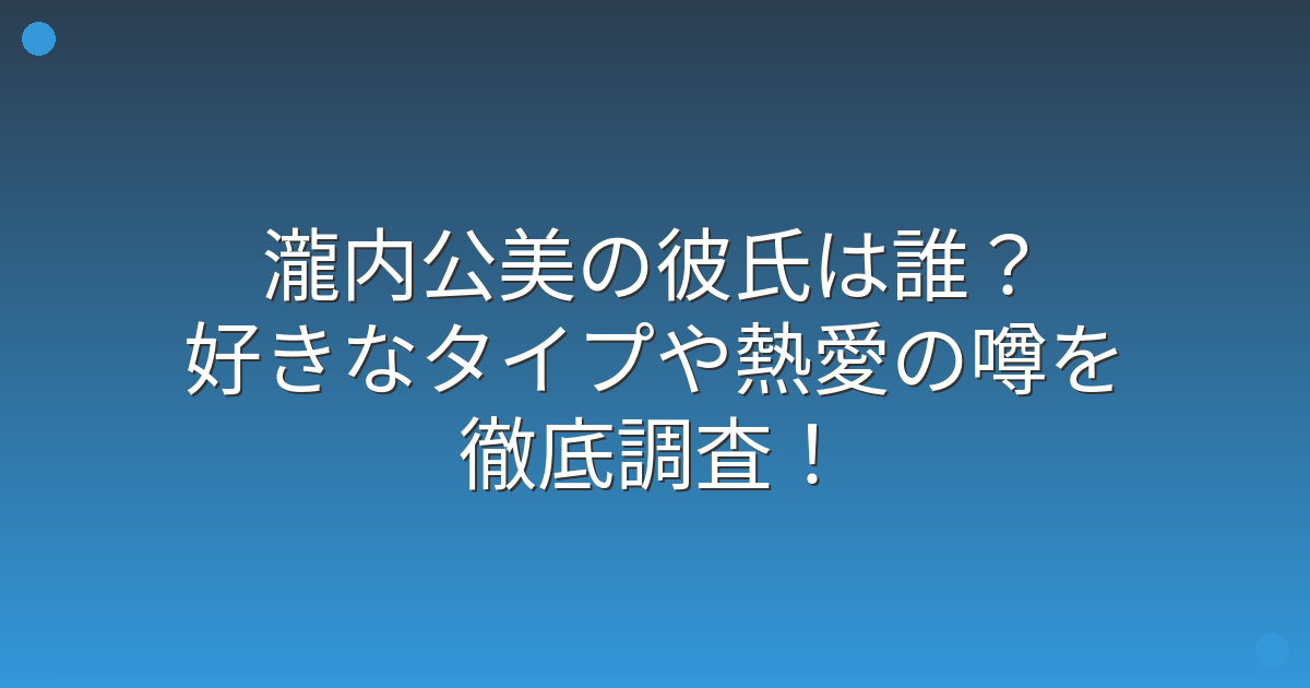 複数の報道を調べてみましたが、瀧内公美さんに現在彼氏がいるという確実な情報は見つかりませんでした。