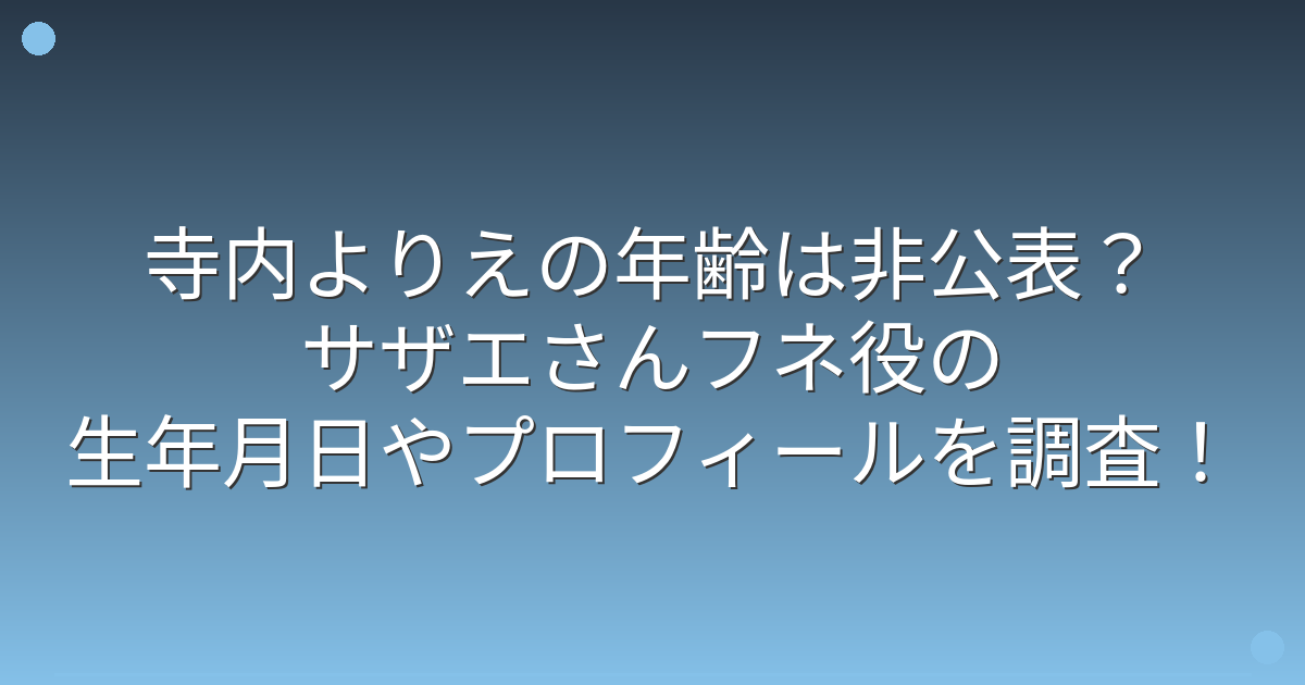国民的アニメ『サザエさん』で磯野フネ役を務める寺内よりえさんの年齢が気になりますね。