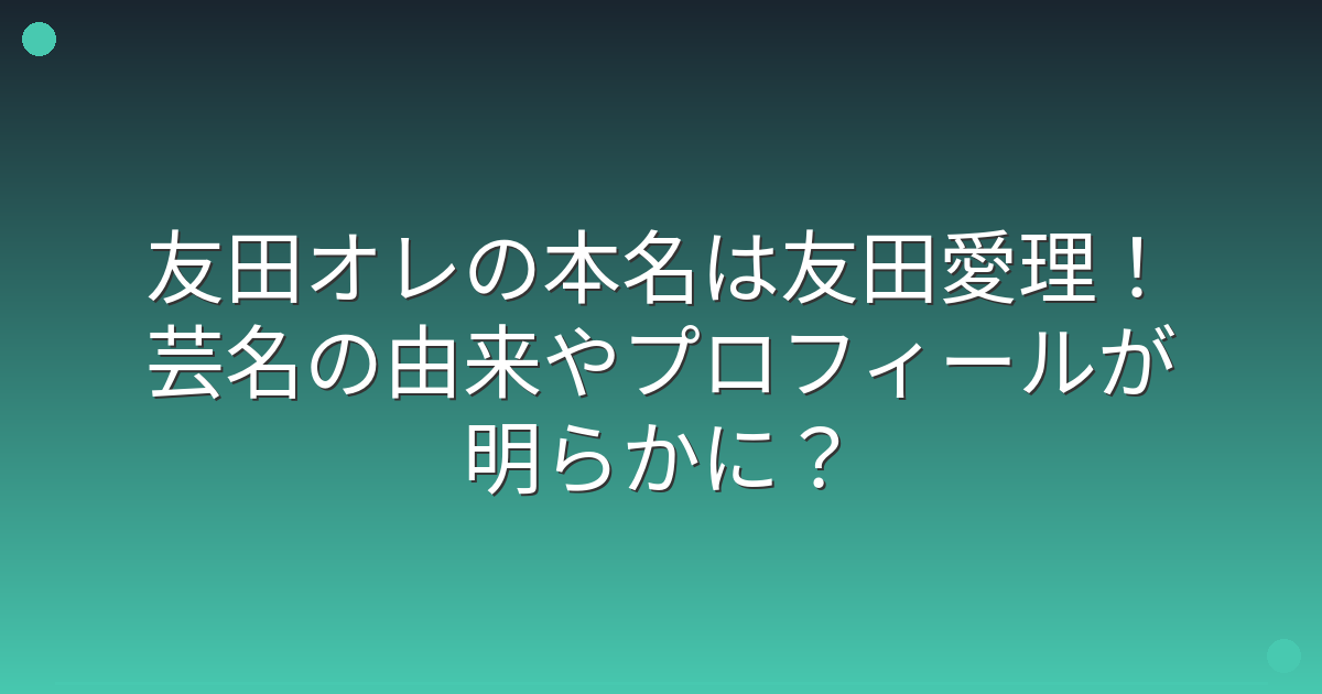 関係者の話では、友田オレさんは本名の一部を使うことで親しみやすさを保ちつつ、印象的な芸名を作り上げたとのことです。