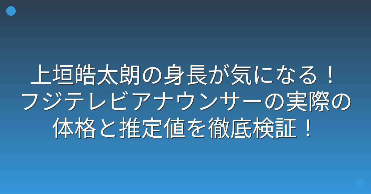 フジテレビの若手アナウンサーとして注目を集めている上垣皓太朗さんの身長について、ネット上で様々な推測が飛び交っています。