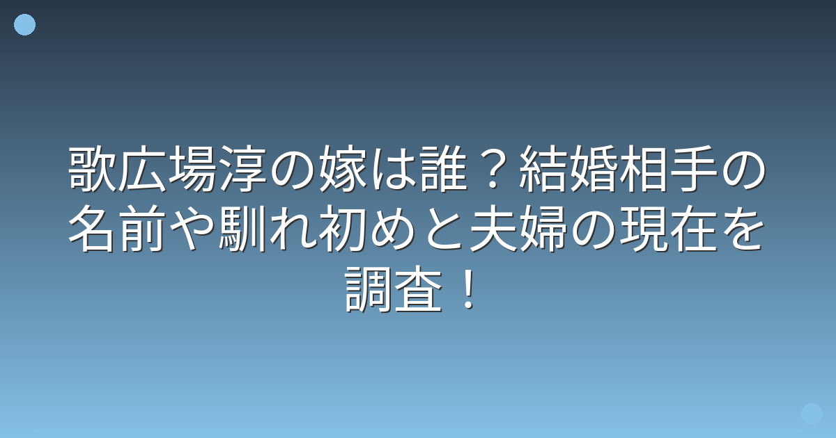 歌広場淳の嫁は誰?結婚相手の情報