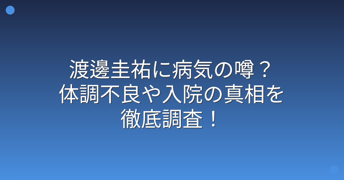 調査の結果、渡邊圭祐さんが重い病気を患っているという事実はなく、入院したという報道も確認できませんでした。