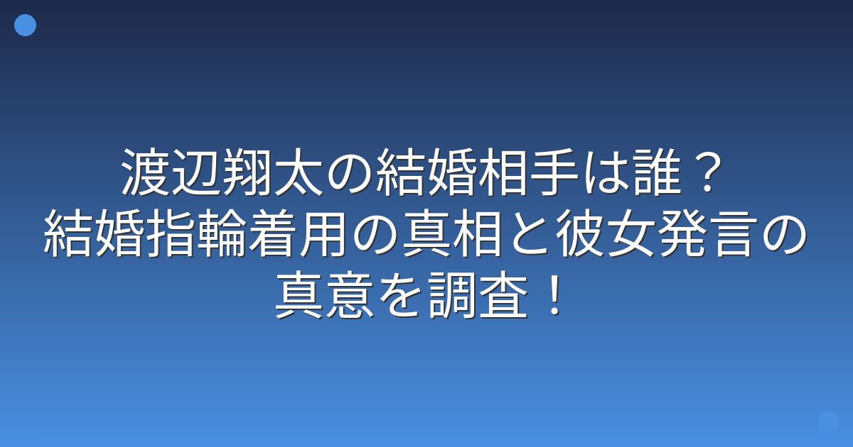 いつか素敵なパートナーと出会い、幸せな結婚報告が聞ける日を楽しみに、これからも渡辺翔太さんの活躍を応援していきましょう。