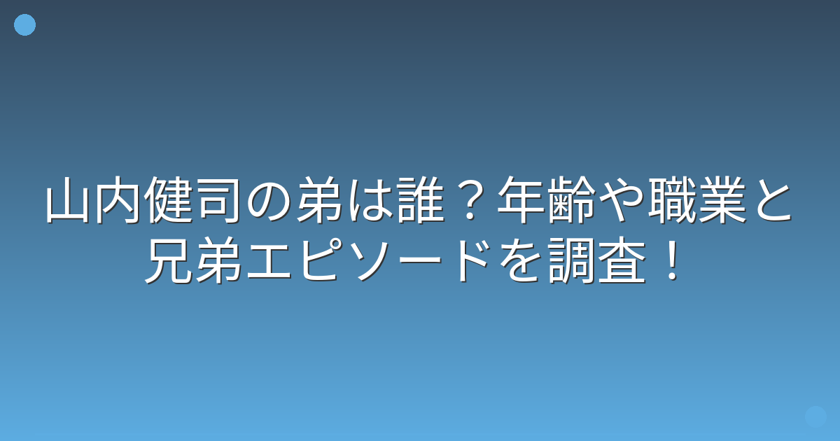 そこで今回は、山内健司さんの弟は誰なのか、年齢や職業、そして兄弟エピソードについて詳しく見ていきましょう!