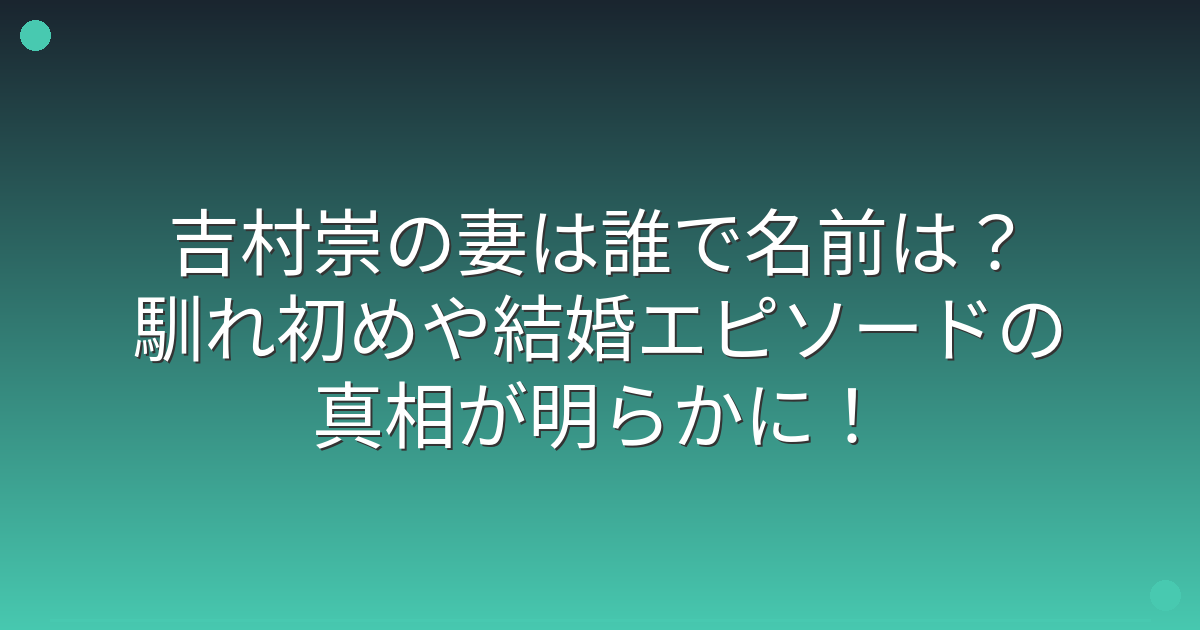 吉村崇の妻は誰で名前は?